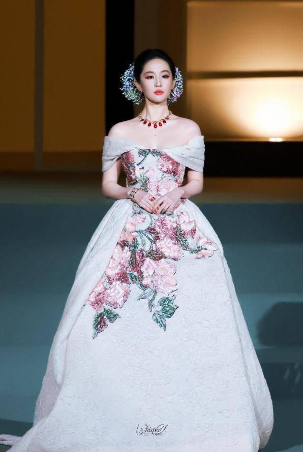 刘亦菲的造型可以说非常惊艳,满身的宝格丽珠宝搭配亮片公主裙,整个人都显得珠光宝气。