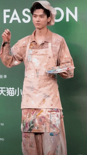 男明星里,龚俊的造型也让人眼前一亮,巧妙地利用衣服本身的涂鸦元素扮成了一名小画家,是男明星里难得的俏皮帅气的风格。
