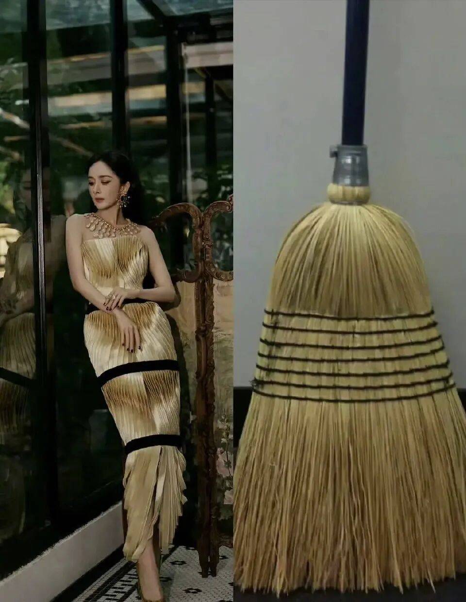 这不正是咱以前用过的老式扫把模样吗?黑色扎带扎着黄色竖条纹,真是越看越像。